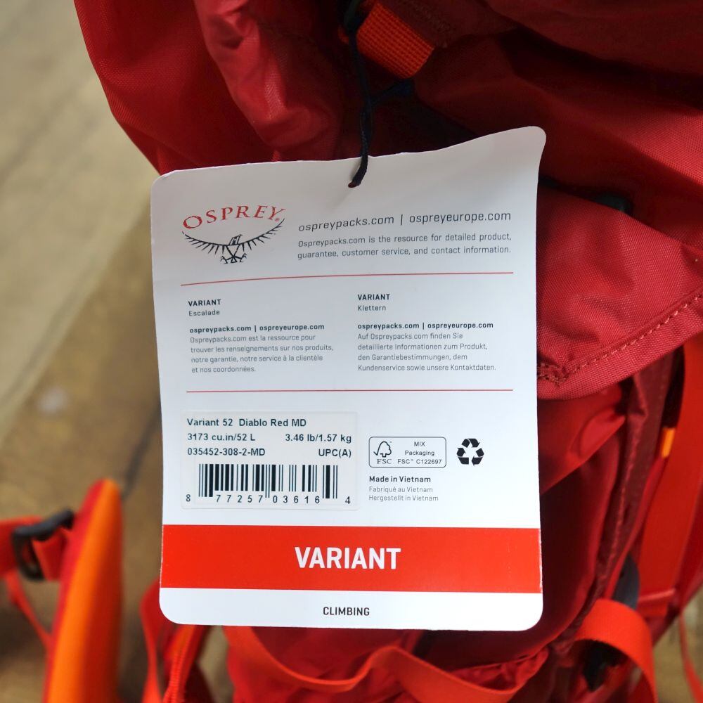 未使用 オスプレー OSPREY VARIANT 52 バリアント 52L 大型 バックパック リュック ザック 登山 アウトドア ce02ds-rk26y08177
