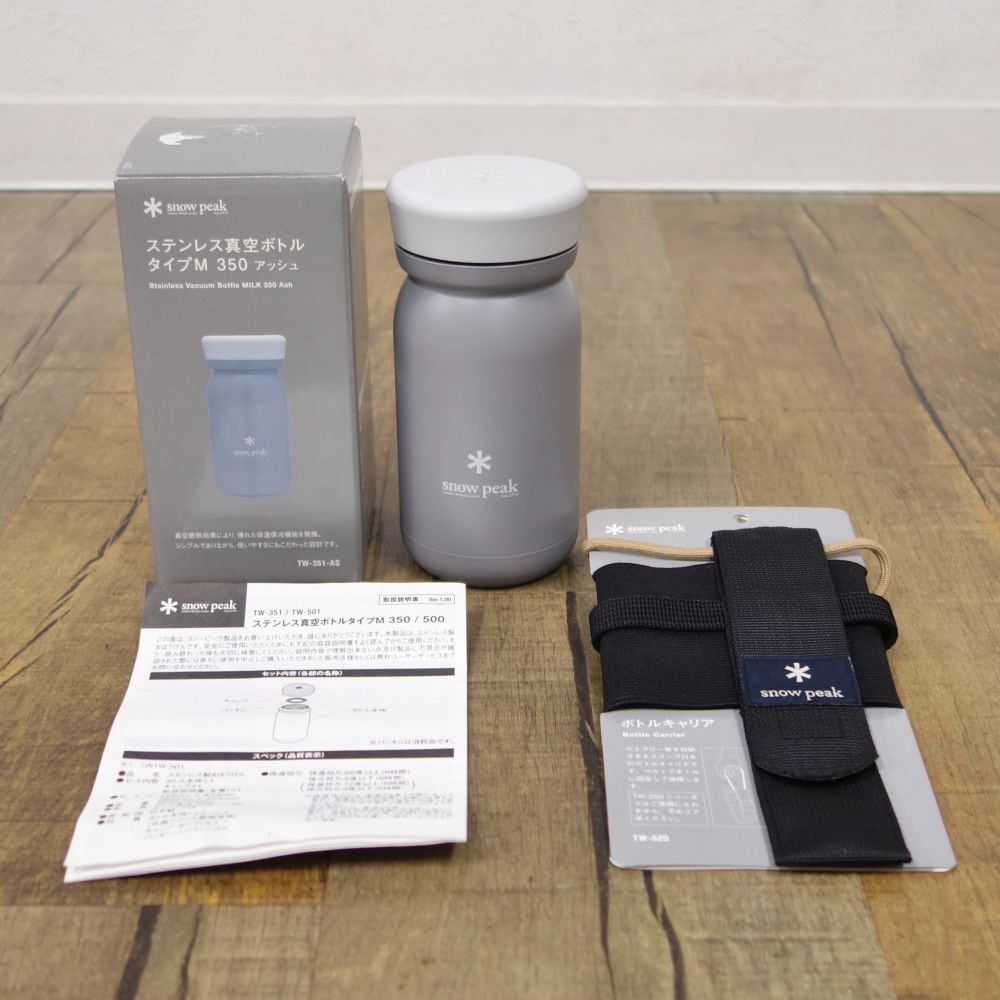 未使用 スノーピーク snowpeak ステンレス真空ボトルタイプM 350 アッシュ ボトルキャリア TW-520 セット 水筒 アウトドア ce03or-rk26y08320