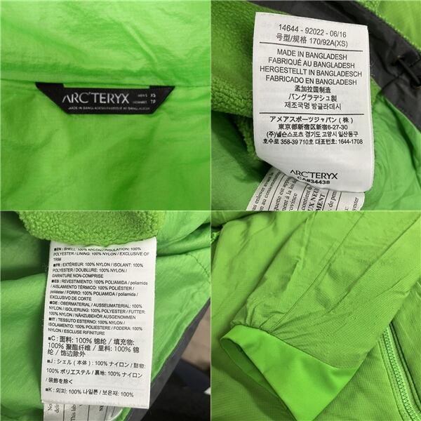 アークテリクス ARCTERYX ATOM LT Hoody アトム フーディ ジャケット アウター 中綿 アウトドア ウェア グリーン XS