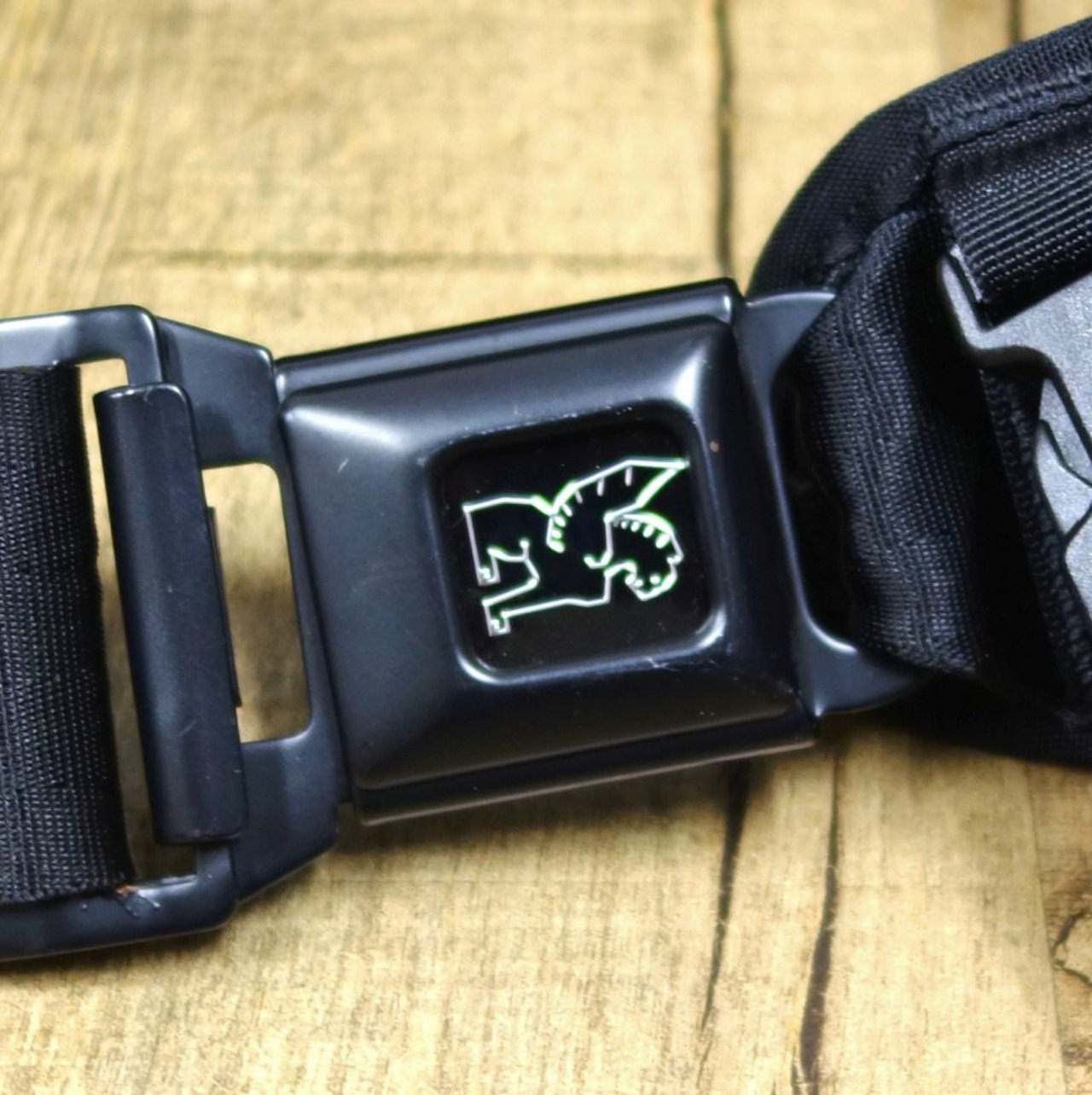 ・シートベルトバックル付きのスリングバッグ◎