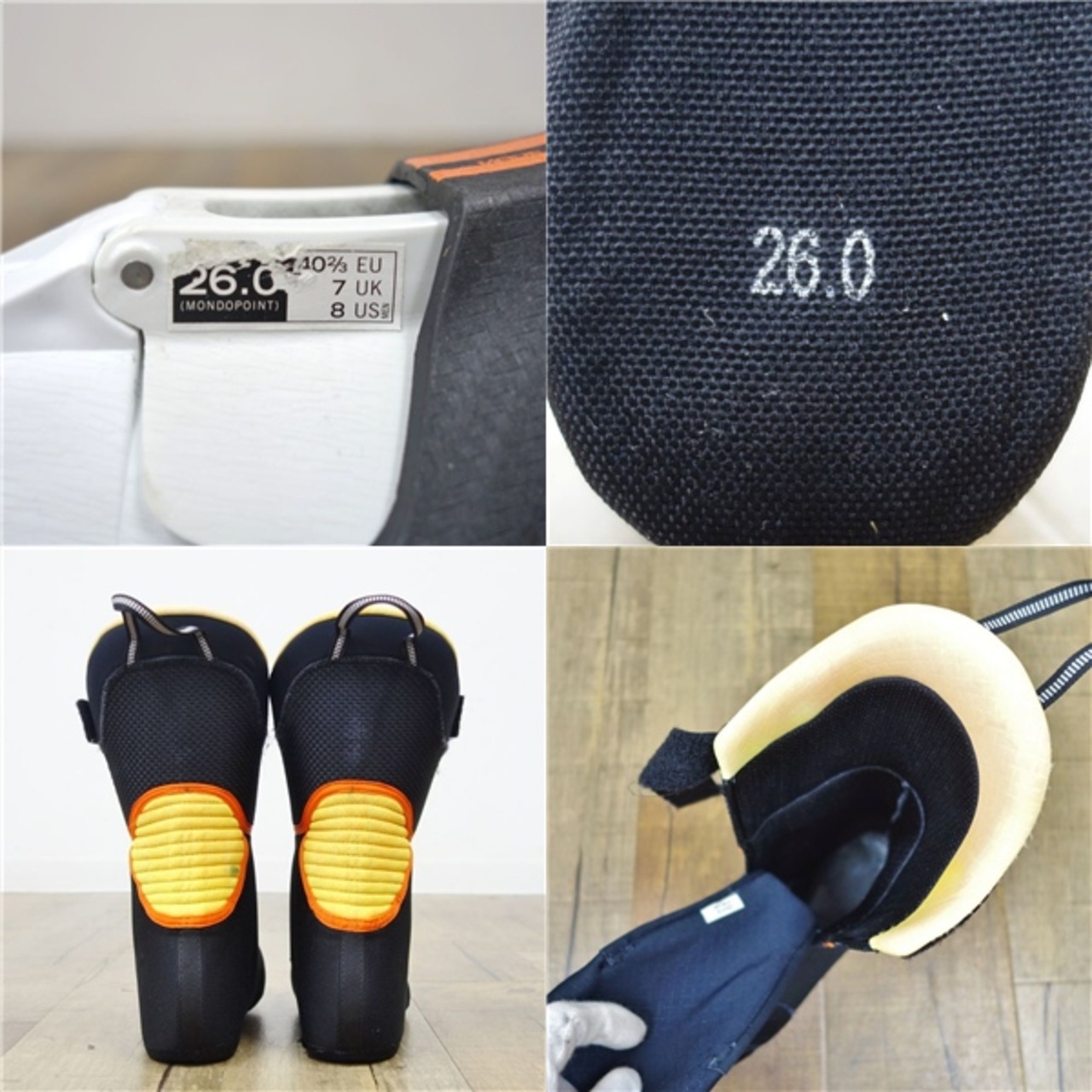 ・インナーブーツ右足かかと側生地に剥がれがございます。