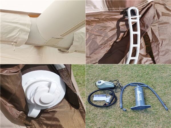 【付属品:電動ポンプ、エアポンプ、フレーム2セット、ポール2本、ペグ24本、自在ロープ、取説】