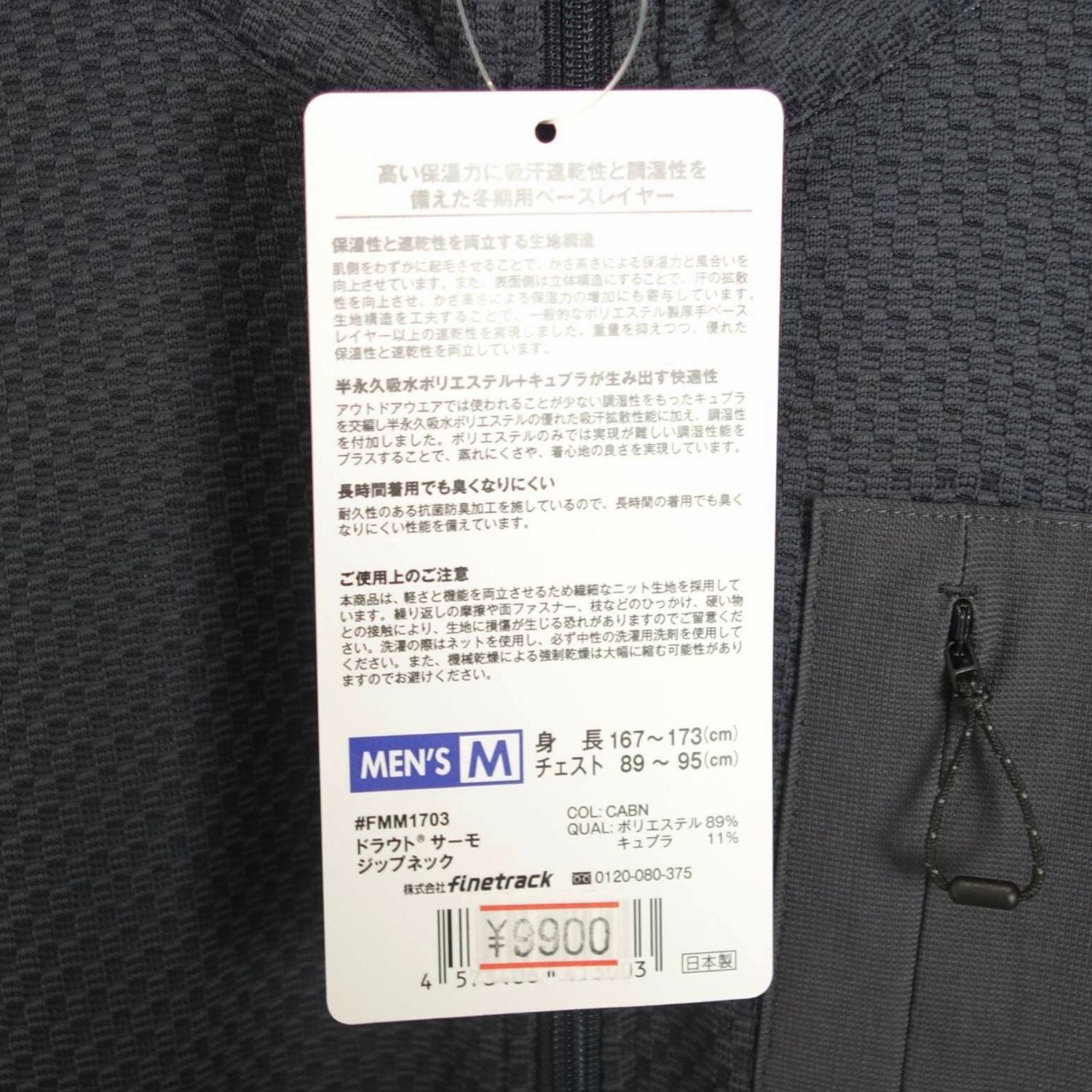 未使用 ファイントラック finetrack ドラウトサーモジップネック FMM1703 メンズ M ベースレイヤー 登山 アウトドア