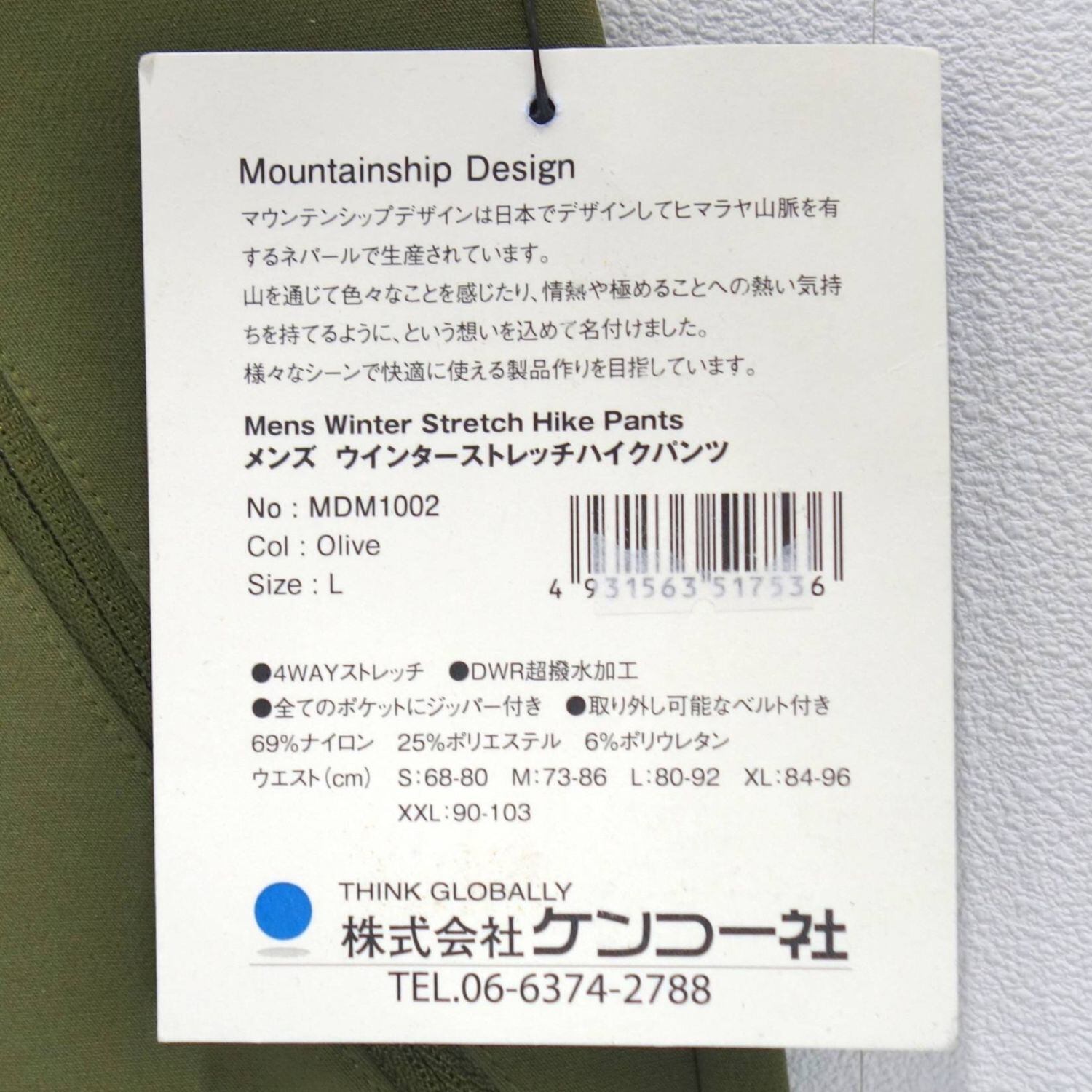未使用 マウンテンシップデザイン MOUNTAINSHIP DESIGN ウィンターストレッチハイクパンツ トレッキングパンツ 登山 ハイキング メンズ L cd02do-rk26y11280 | 山eco
