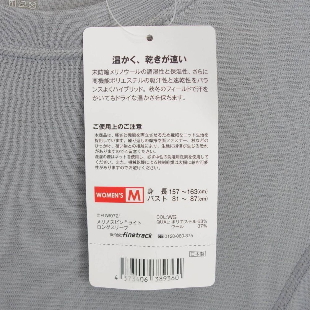 未使用 ファイントラック finetrack メリノ スピンライト ロングスリーブ FUW0721 ベースレイヤー レディース M 登山