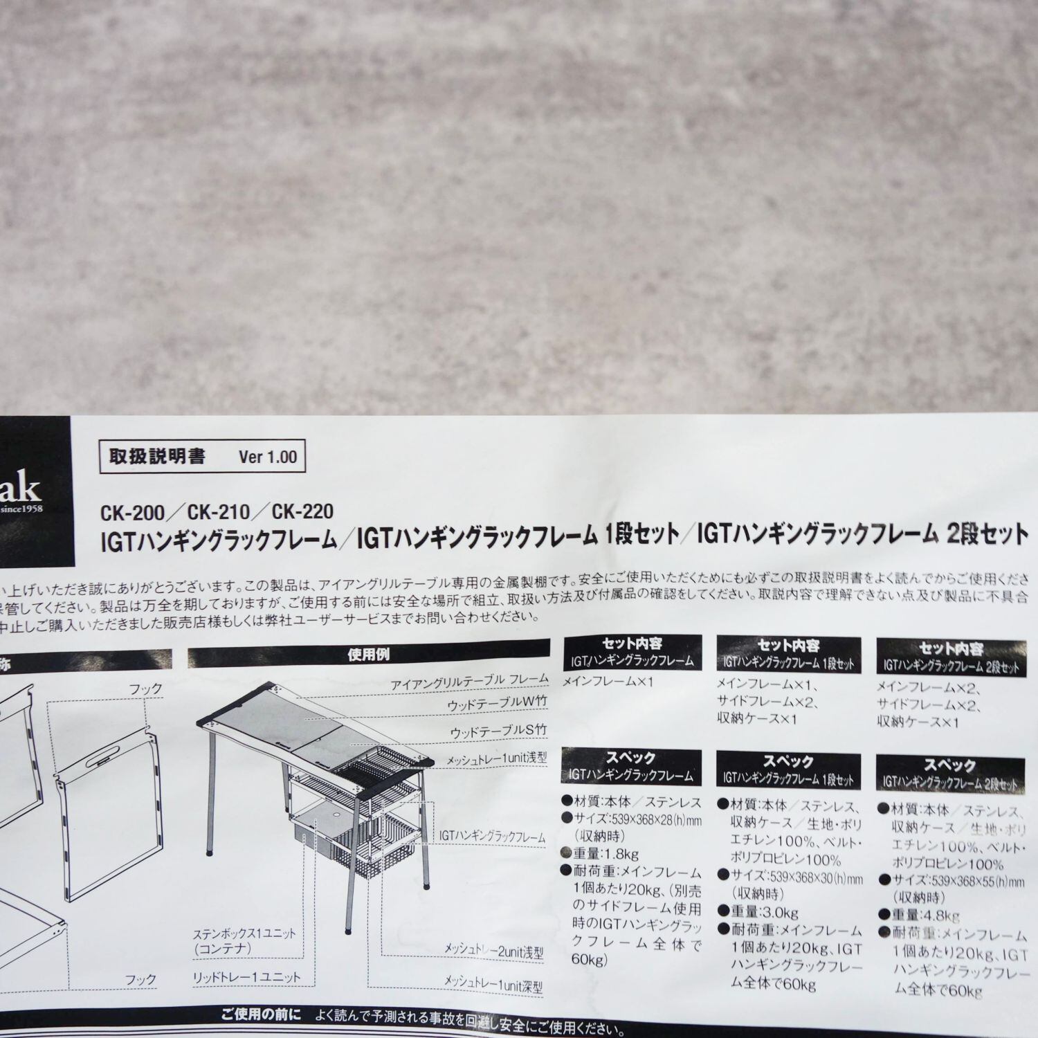 未使用 スノーピーク snowpeak IGT ハンギングラックフレーム 2段セット メッシュトレー 1unit 深型 キャンプ テーブル