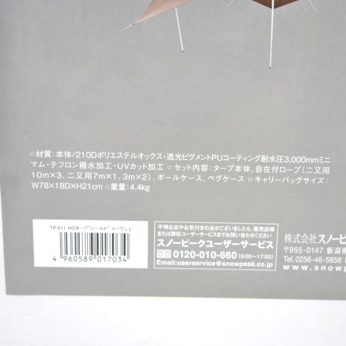 未使用 スノーピーク snowpeak HD タープ シールド メーヴェ L TP-511 タープ 6人用 ファミリー グループ キャンプ アウトドア cd03mb-rk26y11507 | 山eco