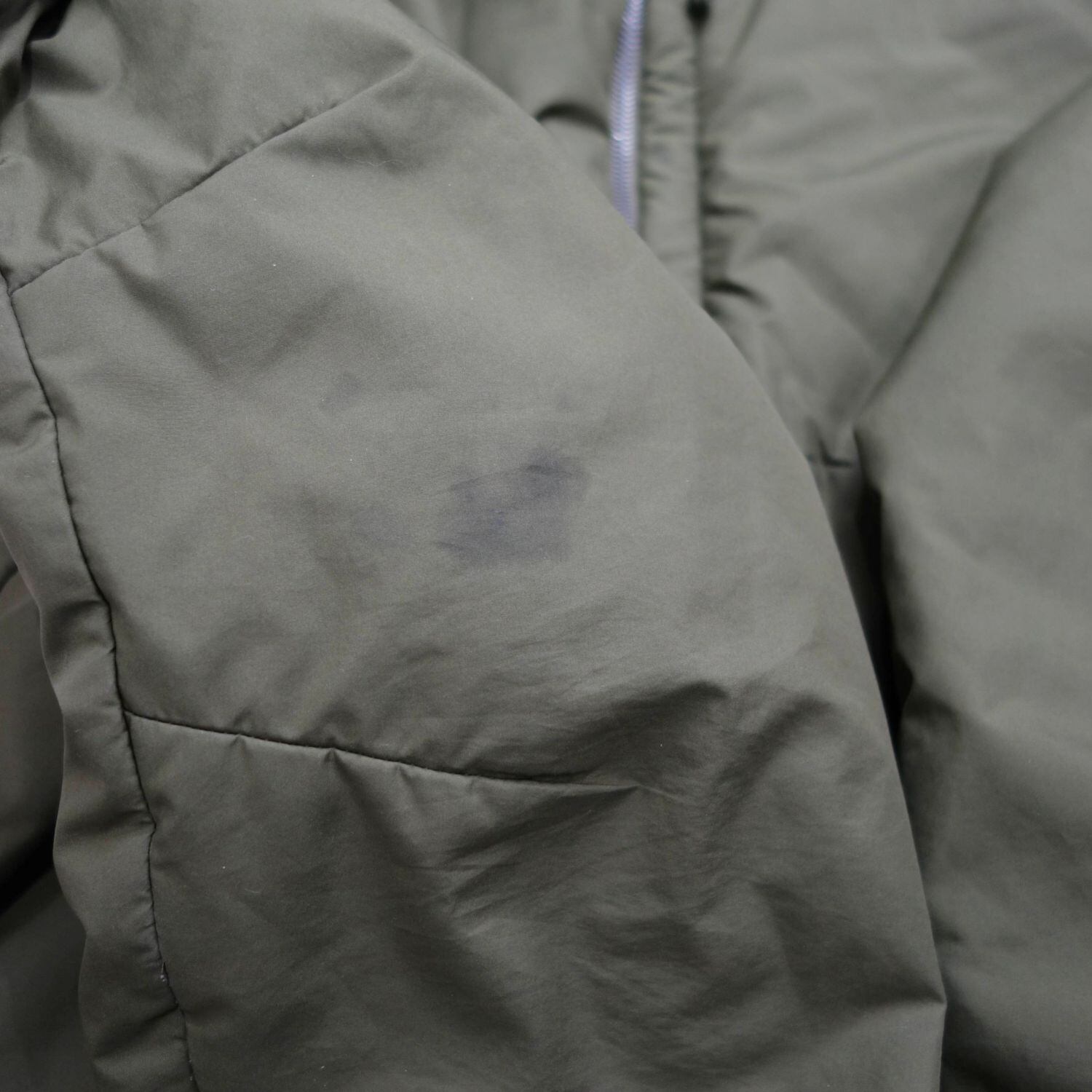 ・フロントチャック横や両袖にシミ汚れがございます。