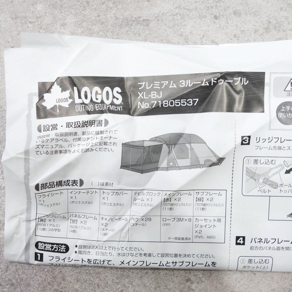 未使用 ロゴス LOGOS プレミアム 3ルームドゥーブル XL-BJ テント キャンプ ファミリー グループ アウトドア