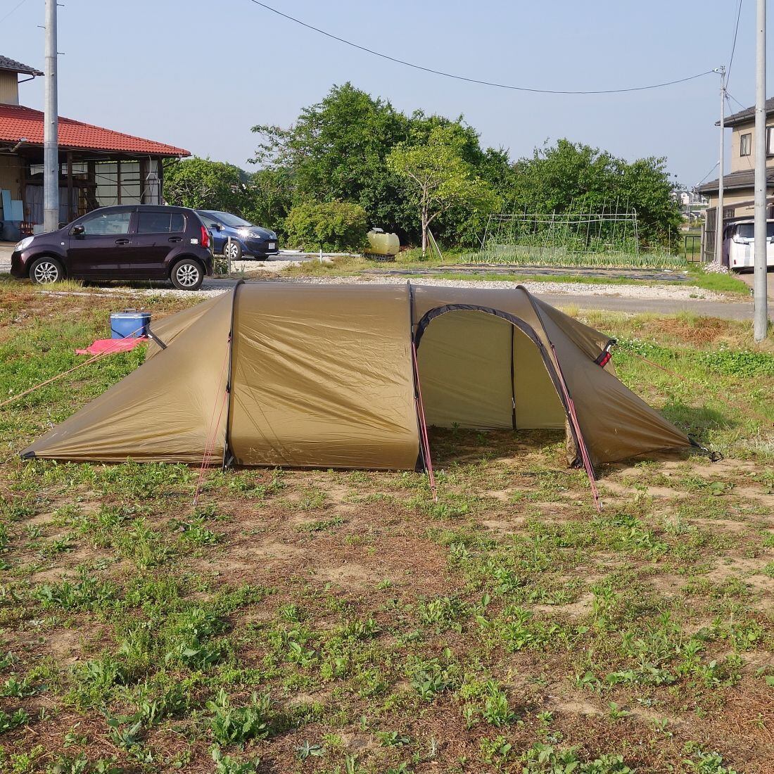 【付属品:ペグ17本、自在ロープ、取扱説明書、リペアパイプ(リペア用フレーム一節は使用したため付属なし)】