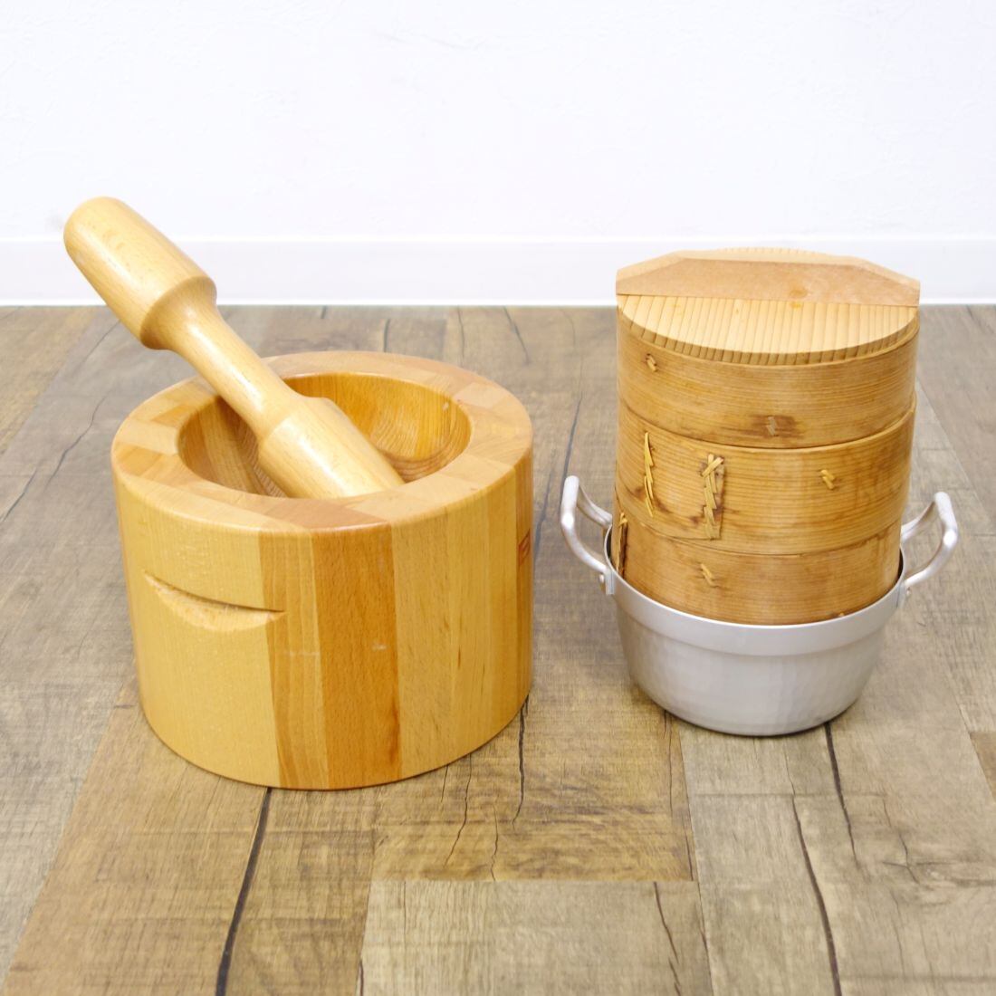 ・ミニ臼:直径22cm、杵、鍋、せいろ(木蓋、竹蓋)、ふきん