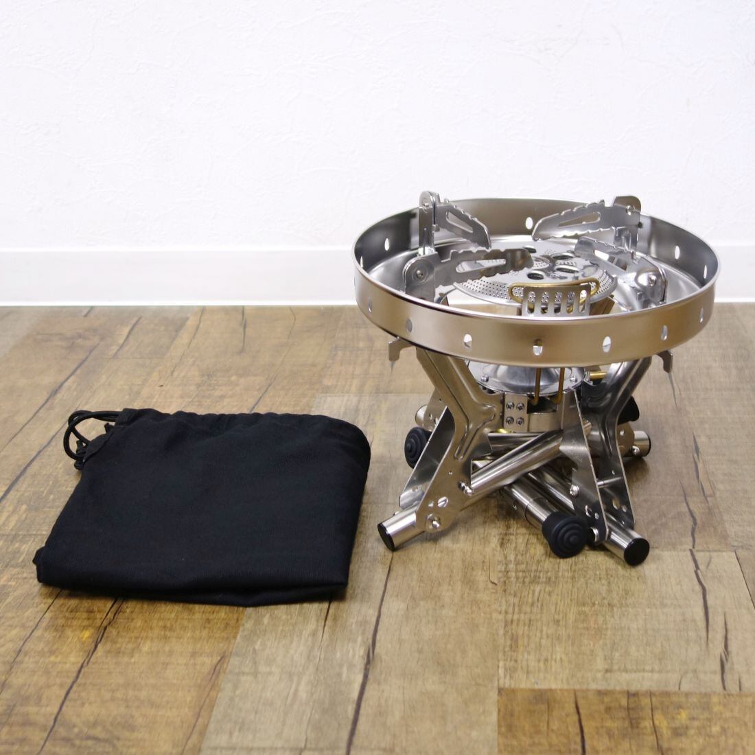 ・折り畳み可能な4本のゴトクは最大直径31cmの大型鍋にも対応します。