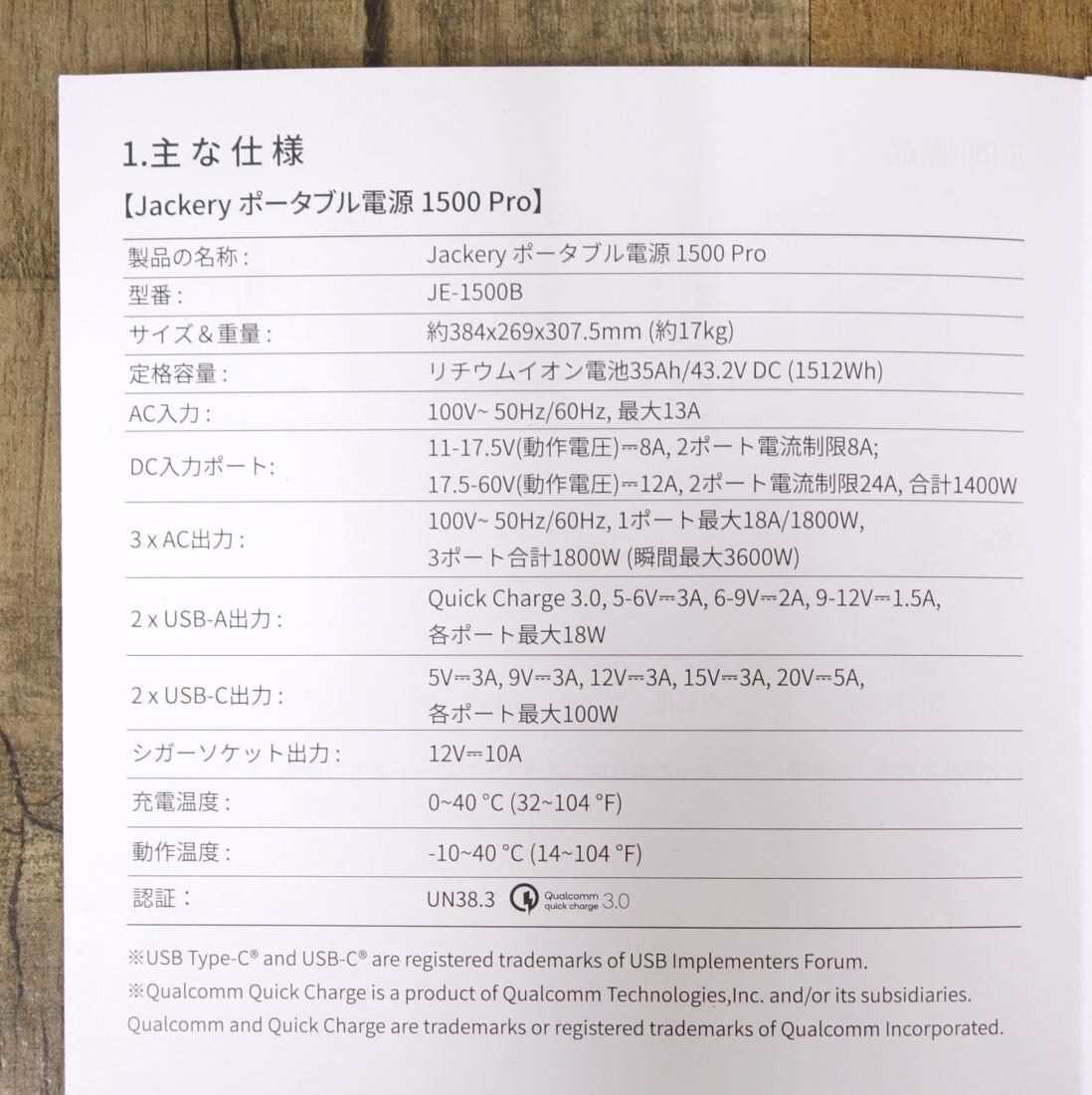 ・USB-A(Quick Charge 3.0)×2:5-6V/3A 6-9V/2A 9-12V/1.5A 各ポート最大18W