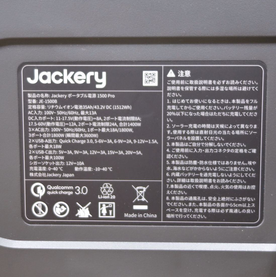 未使用 ジャクリ Jackery ポータブル電源 1500 Pro JE-1500B 収納バッグ セット 発電機 充電 キャンプ アウトドア