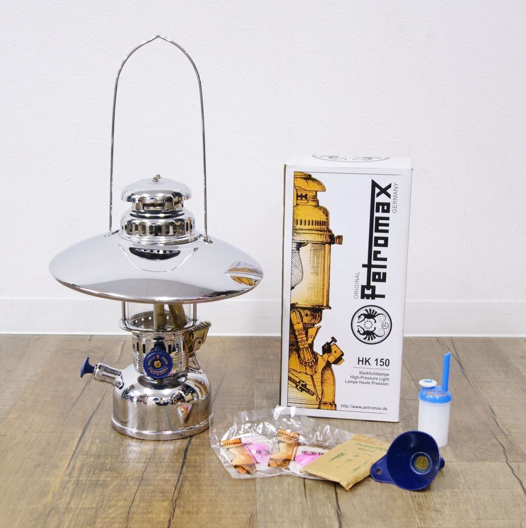 未使用 デットストック ペトロマックス Petromax ケロシン ランタン HK150 リフレクター付き ニッケル 底面刻印あり キャンプ アウトドア cg06os-rk26y03318