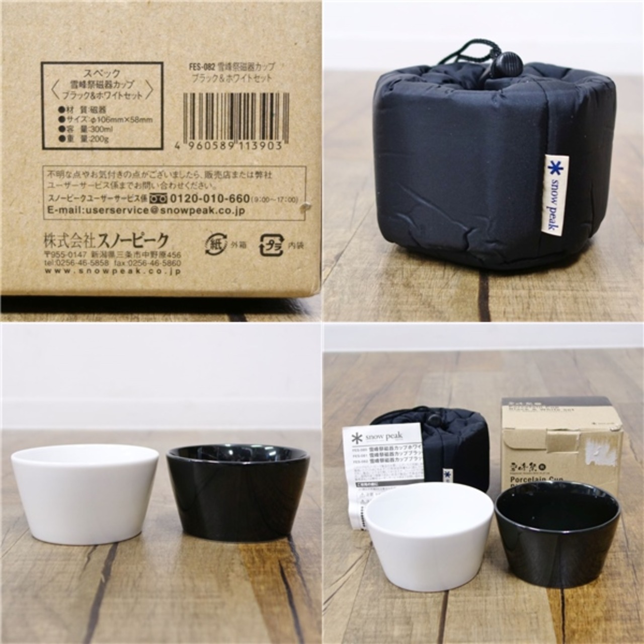 未使用 スノーピーク snowpeak 雪峰祭 磁器カップ ブラック & ホワイトセット Porcelain Cup FES-082 300ml カップ 食器 キャンプ アウトドア cg06do-rk26y03369