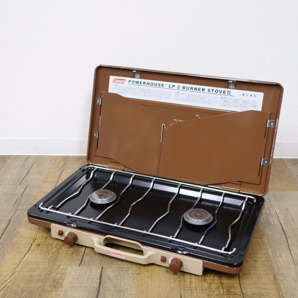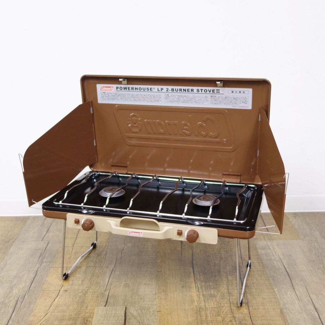 美品 コールマン Coleman パワーハウス LP ツーバーナーストーブ2 バターナッツ 2000038474 コンロ OD缶 キャンプ アウトドア cg06dm-rk26y03438