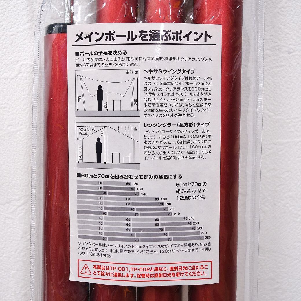 未使用 スノーピーク snowpeak ウイングポール レッド 280cm 240cm セット 赤ポール タープポール キャンプ アウトドア