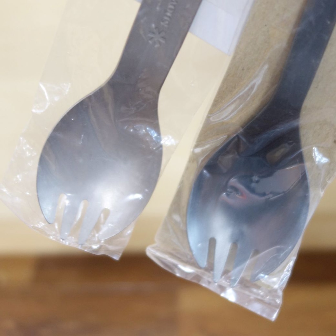 ・snowpeakの廃盤 希少な先割れスプーン ステンレスブラック チタン先割れスプーンショート1本 セットです♪