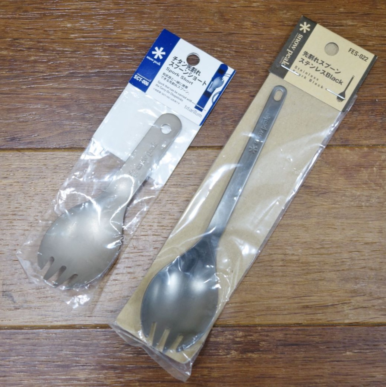 未使用 スノーピーク snowpeak 先割れスプーン ステンレスブラック チタン先割れスプーンショート セット 各1本 スプーン キャンプ アウトドア cg07os-rk26y03524