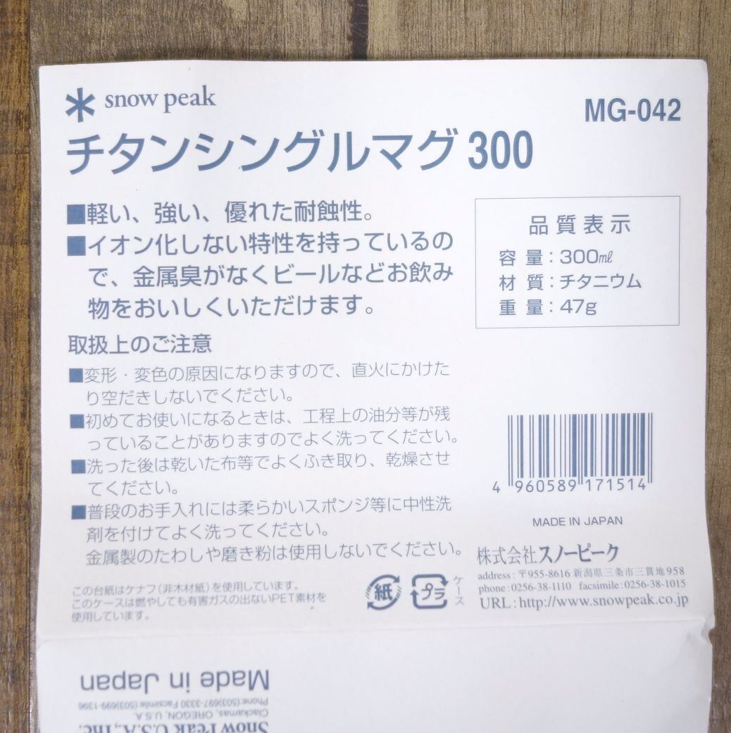 未使用 廃盤 スノーピーク snowpeak チタンシングルマグ 300 MG-042 マグカップ コップ 食器 キャンプ アウトドア cg07os-rk26y03532