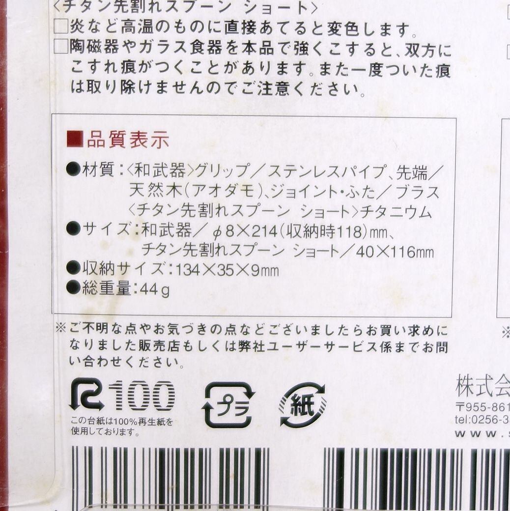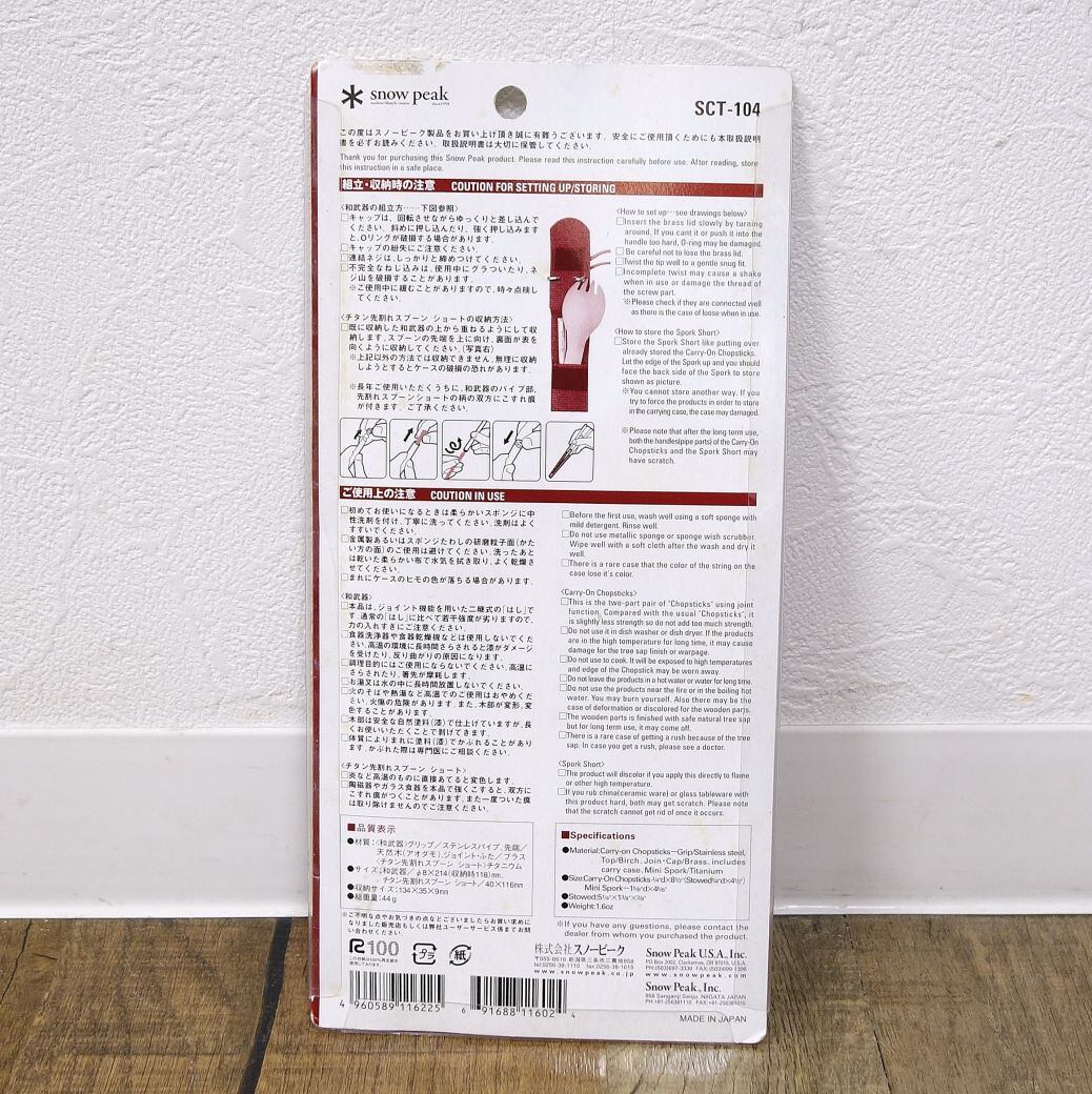未使用 スノーピーク snowpeak 和武器 チタン先割れ スプーンショートセット SCT-104 箸 スプーン キャンプ アウトドア
