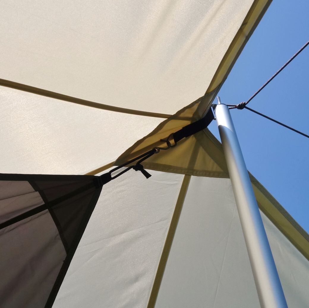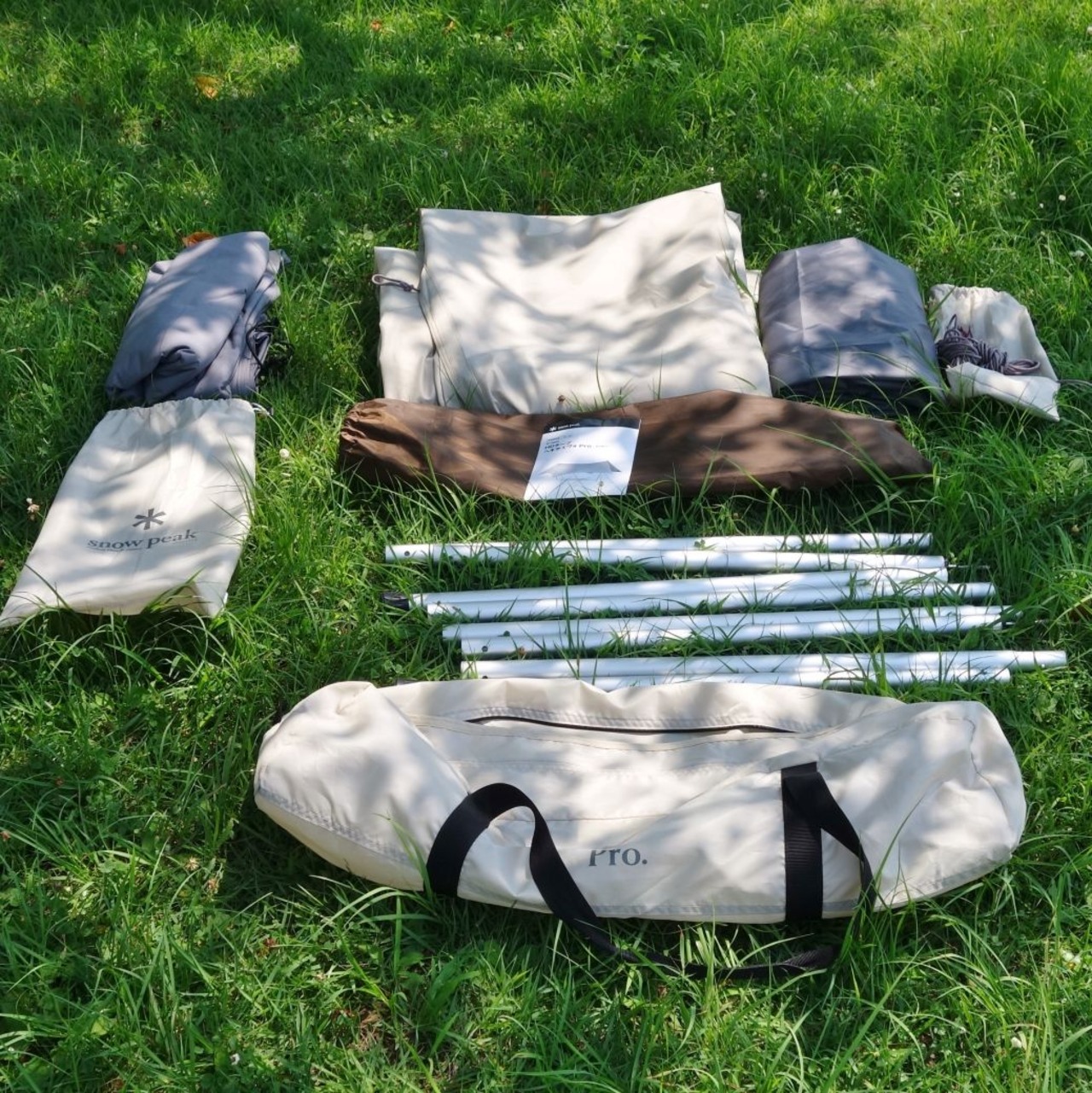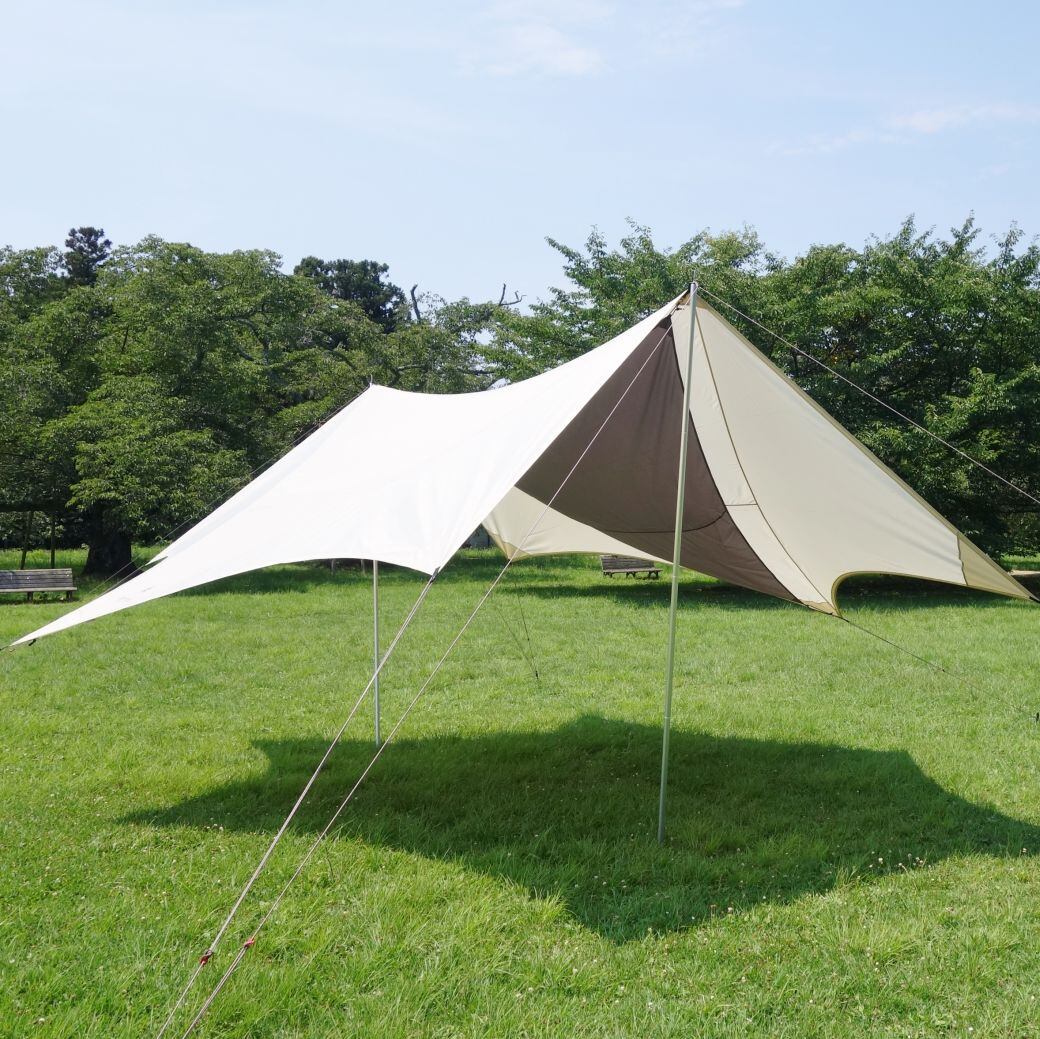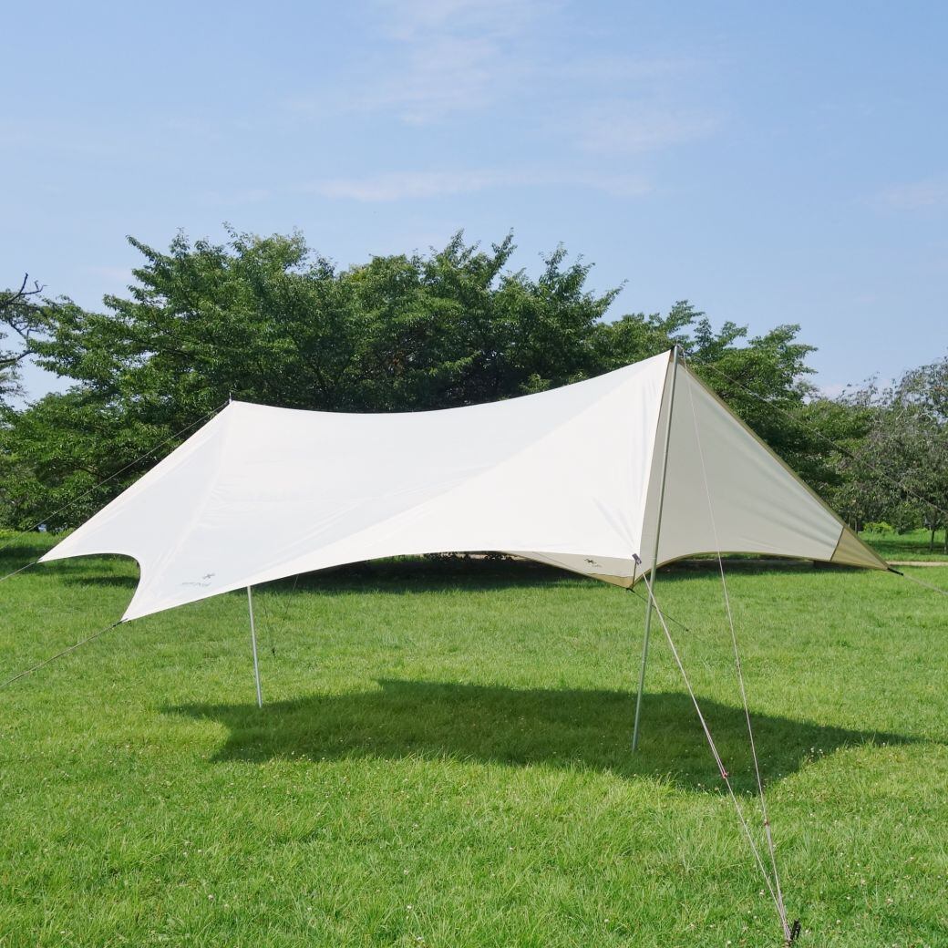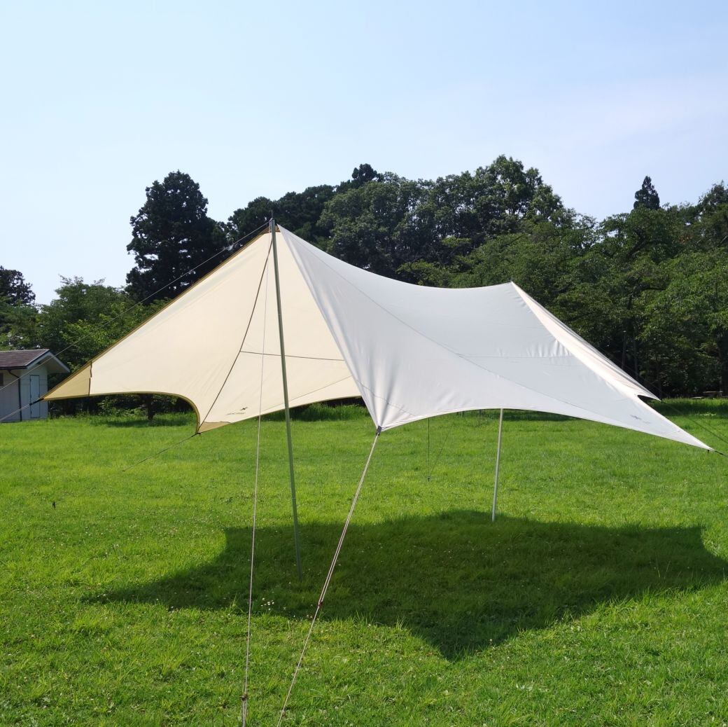 ・snowpeakのHDタープ ヘキサエヴォ Pro. アイボリー(TP-260IV) ポール ×2本 TAKIBI インナールーフ(TP-250IR) 付です♪