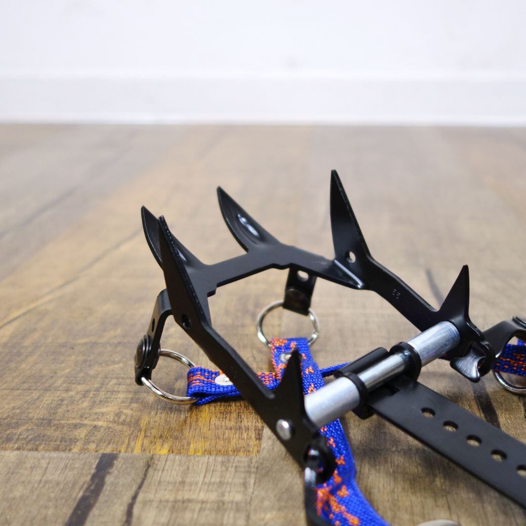 ・冬季縦走登山に対応した10本爪アイゼン/マイナスドライバーでサイズ調整が可能で前部分が上下に可動しブーツにフィットしやすくなっています!