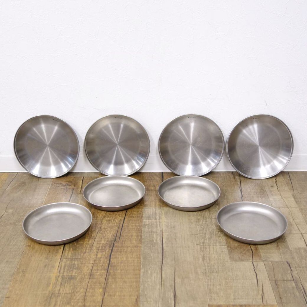・スノーピークの「テーブルウェアプレートL TW-034 4枚」と「チタントレックプレート STW-002T 4枚」セットです♪