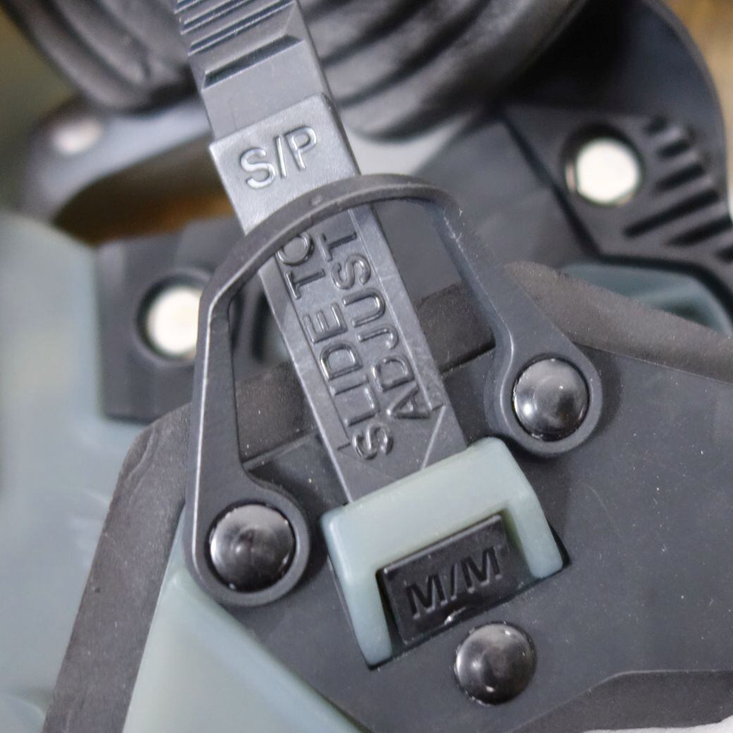 ・靴のサイズに合わせ、甲とかかとの2箇所のベルトは2段階で長さの調整が可能。
