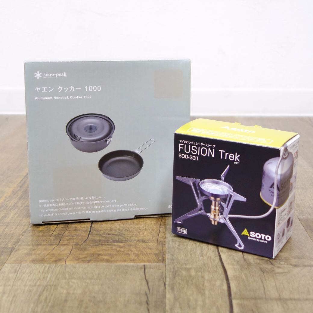 ・ snowpeakの「ヤエンクッカー1000 SCS-200」とSOTOの「マイクロレギュレーターストーブ FUSION Trek SOD-331」セットです♪