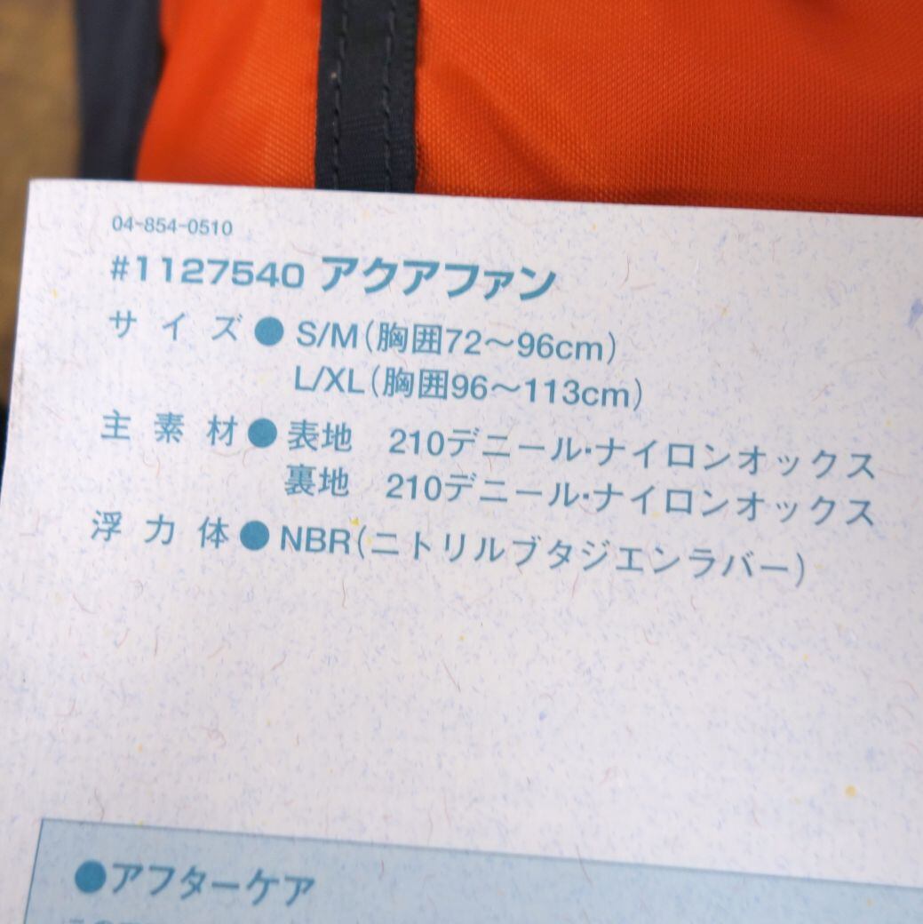 ・mont-bell アクアファン:品番#1127540 /サイズ:S/M(胸囲72〜96cm)