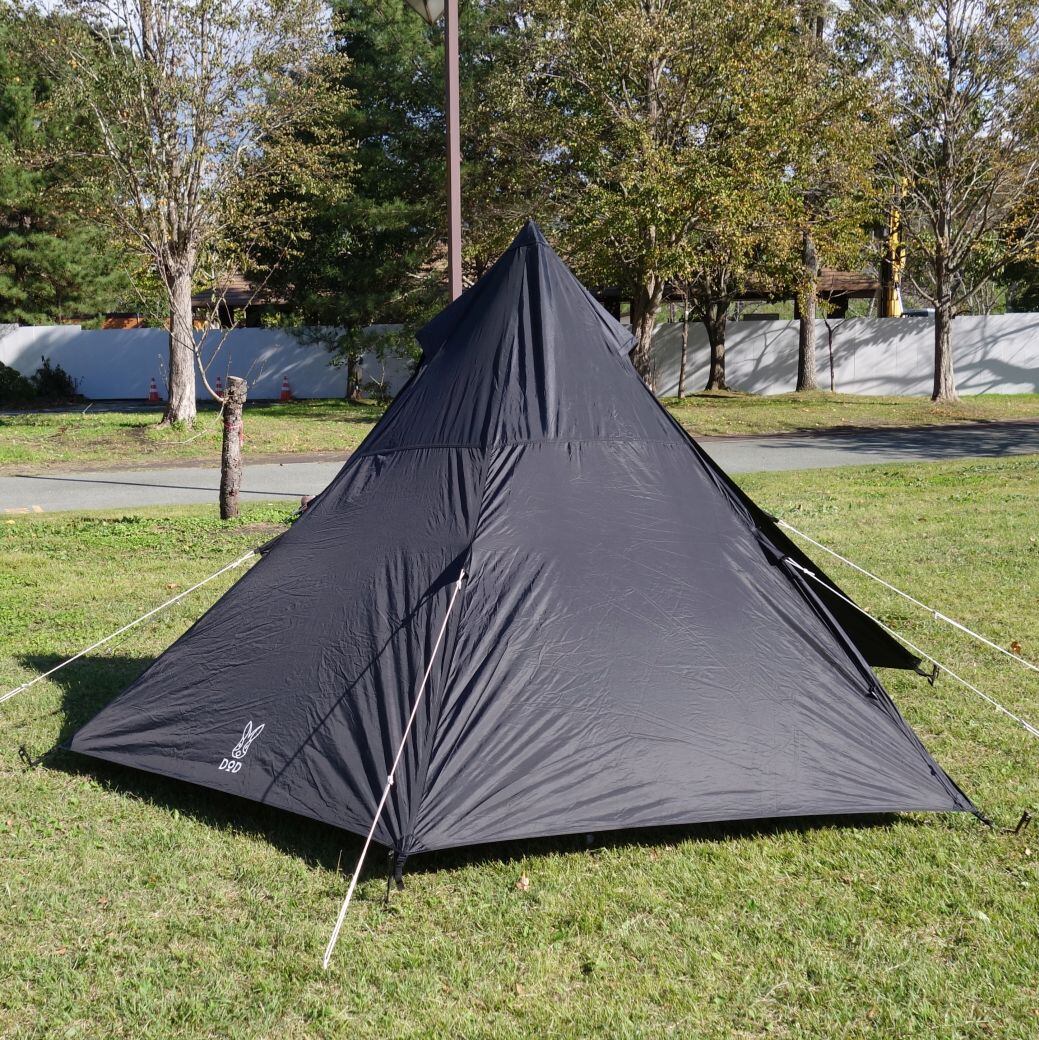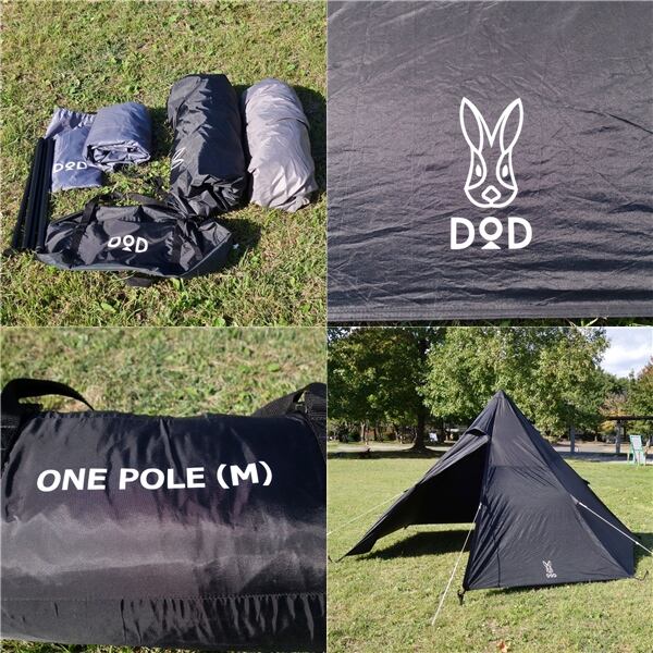 美品 ディーオーディー DOD ONE POLE TENT M ワンポール テント ブラック グランドシート付 5人用 キャンプ アウトドア