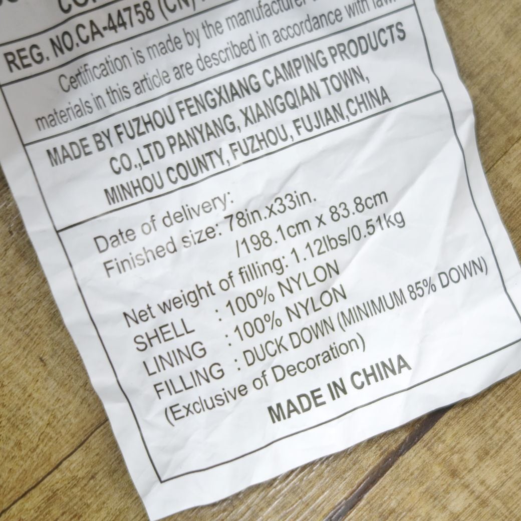 ・快適使用温度:華氏20°F / 摂氏 −6℃