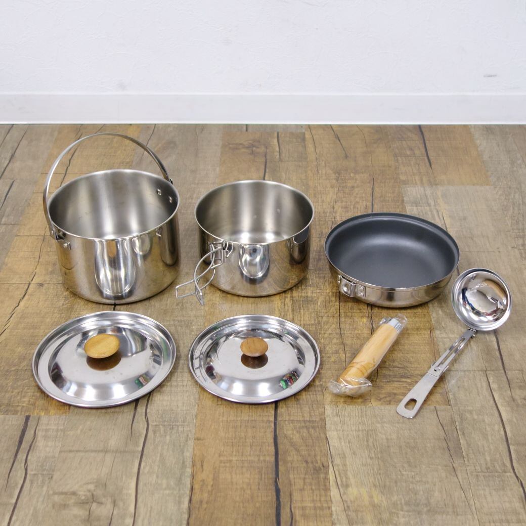 ・セット内容:180/160ビリーポッド、185フライパン、ハンドル、お玉、収納袋