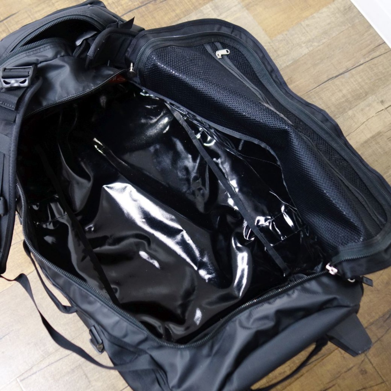 ・防水性と耐久性に優れる1000デニールのTPEファブリックラミネート素材を使用した、ウィーラー付きの大型ダッフルバッグです