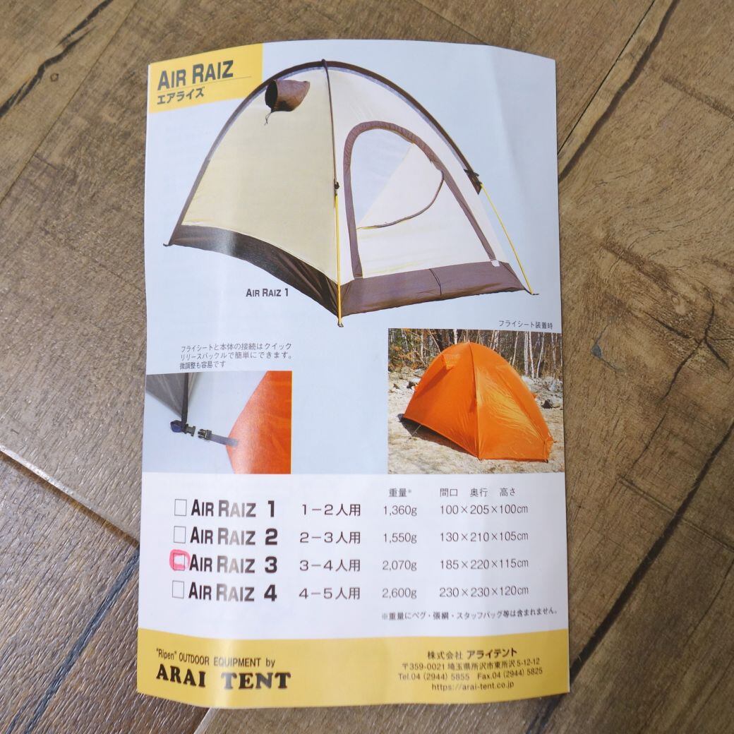 未使用 アライテント ライペン ARAI TENT RIPEN AIR RAIZ 3 エアライズ 3-4人用 山岳 テント 登山 キャンプ アウトドア