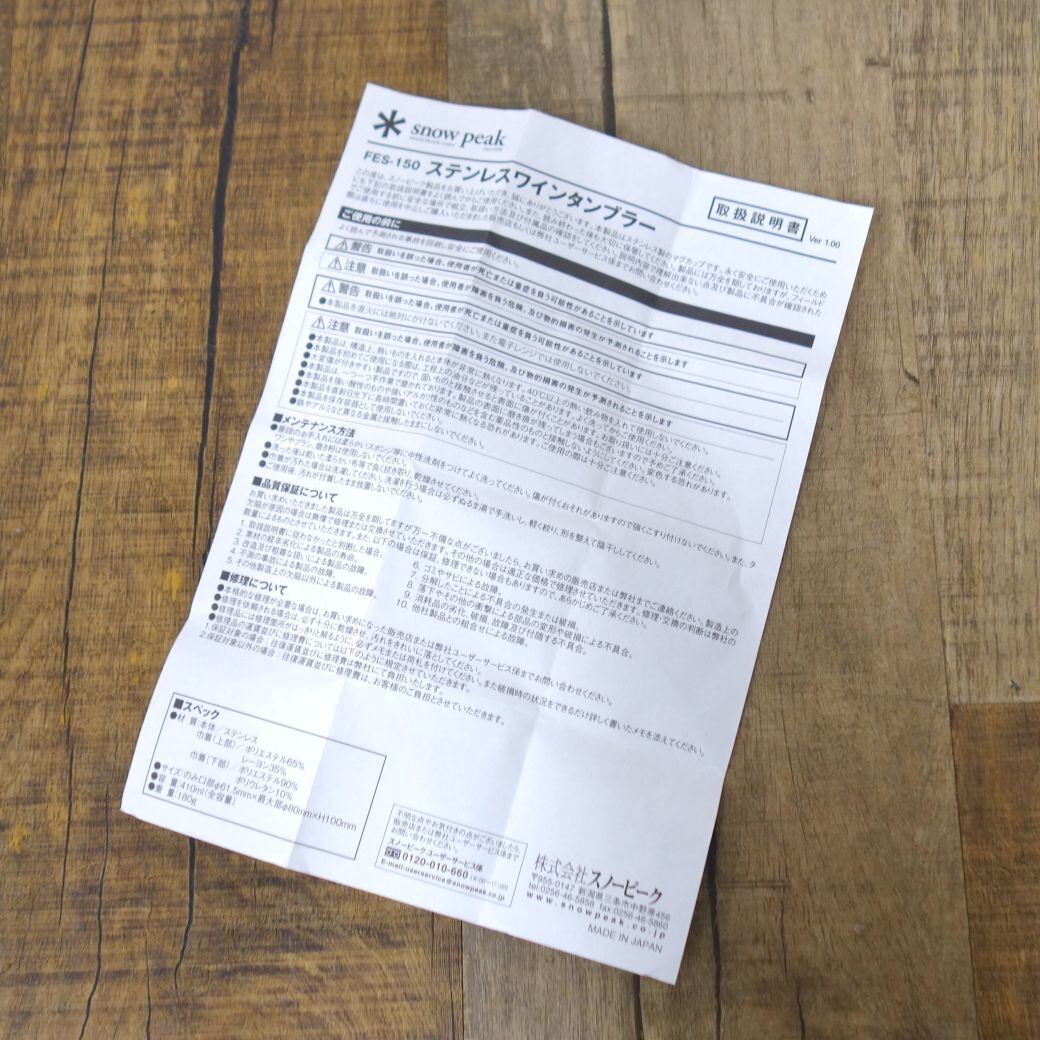 未使用 希少 スノーピーク snowpeak 2013年 雪峰祭 限定 ステンレス ワイン タンブラー FES-150 キャンプ 食器 コップ カップ アウトドア cf01de-rk26y04829