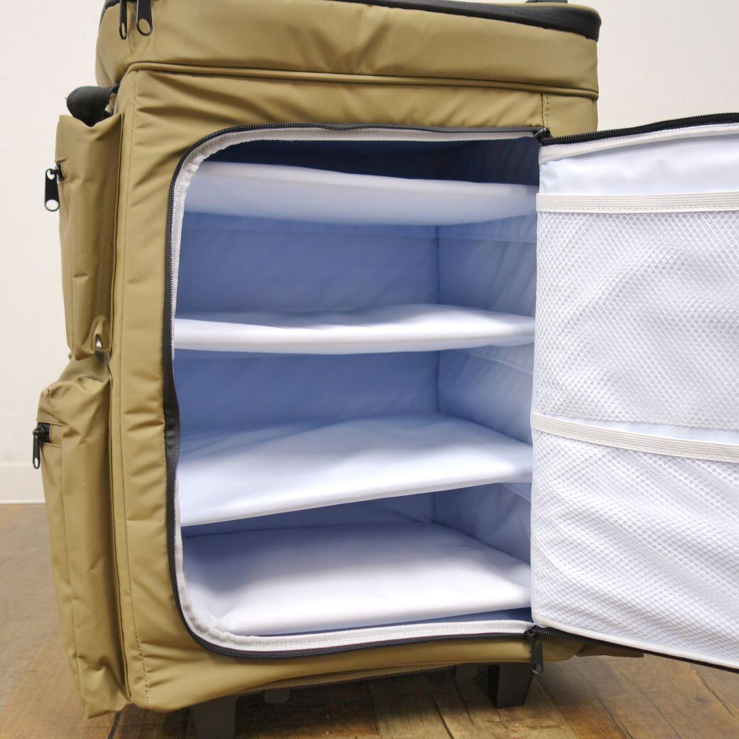・食材を整理できる大型クーラーバッグ!ホイールがついており、食材とギアをまとめて簡単に運ぶことが可能です♪