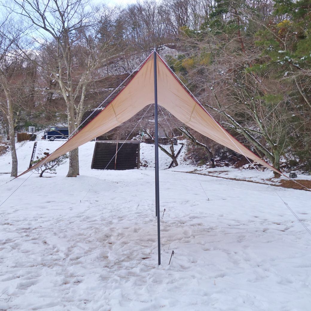 ・snowpeakの「50周年記念 リップウィング タープ 限定品100張 TP-425 純正ブラックポール2本付き」です♪