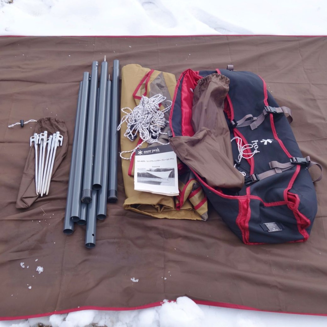 スノーピーク snowpeak 50周年記念 リップウィングタープシールドPro 限定品100張 TP-425 純正ブラックポール 2本付 キャンプ アウトドア cf03om-rk26y05200