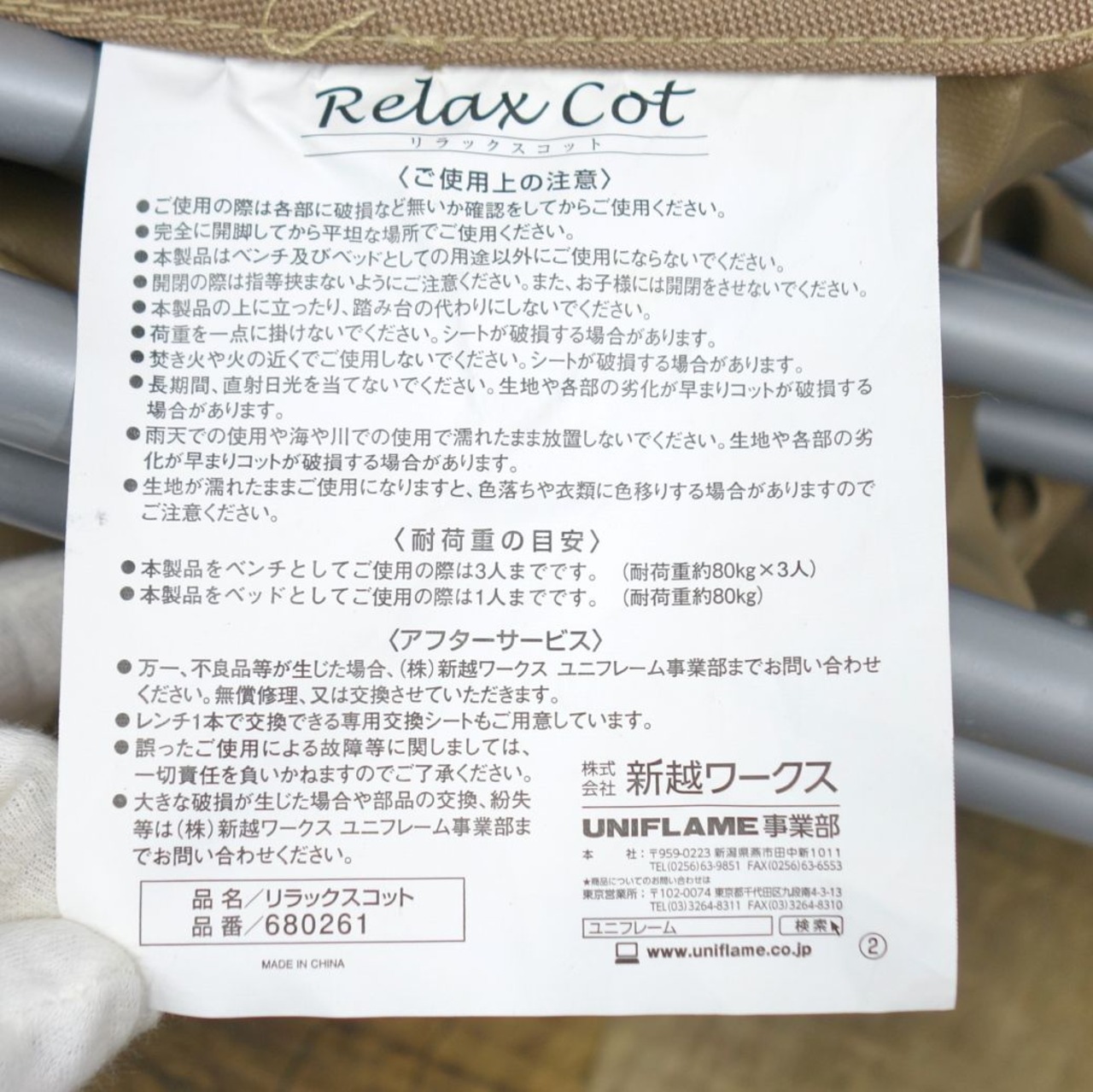 ユニフレーム UNIFLAME Relax Cot リラックス コット 680261 キャンプ ベット 寝具 ベンチ バーベキュー アウトドア