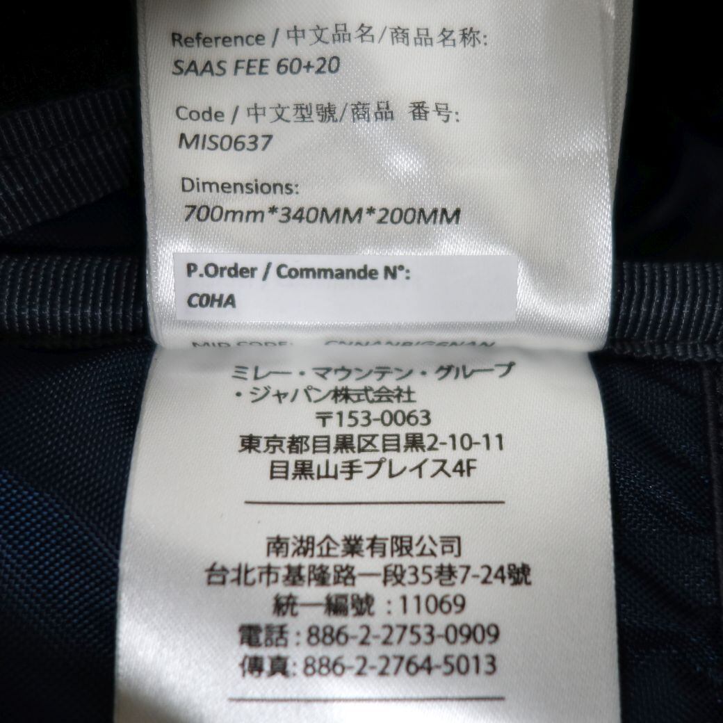 美品 ミレー MILLET SAAS FEE 60+20 サースフェー 60L ザック バックパック リュック 登山 トレッキング アウトドア
