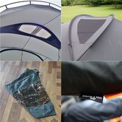 【付属品:本体・フレームポール・TPUルーフ・ペグ8本・自在ロープ・取り扱い説明書・メッシュドア×2・収納ケース】