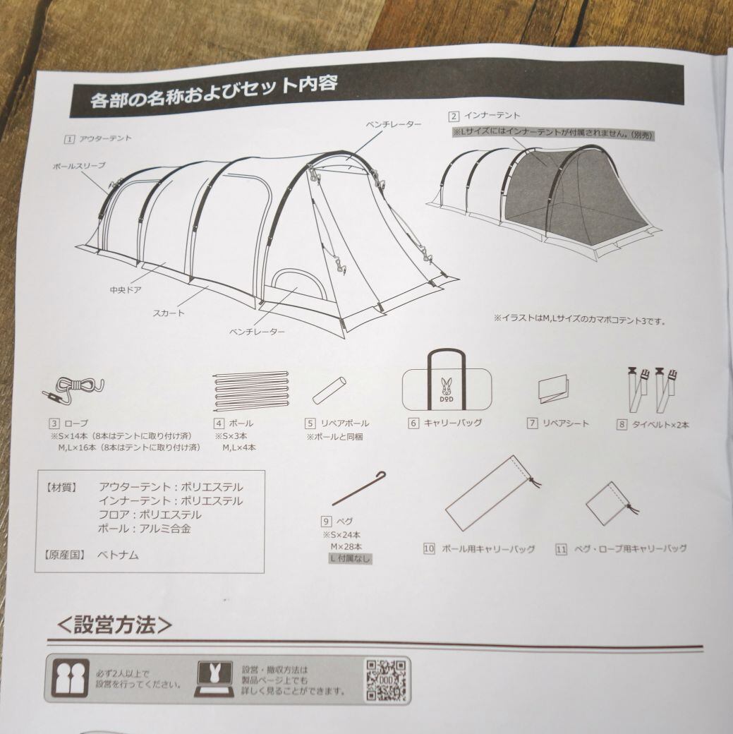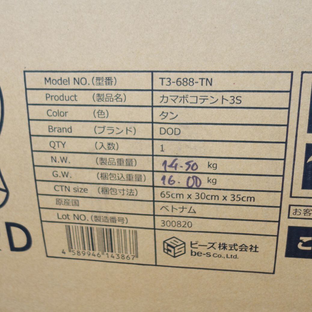 未使用 ディーオーディー DOD カマボコテント 3S T3-688-TN 2ルーム トンネルテント タン 2-3人用 キャンプ アウトドア