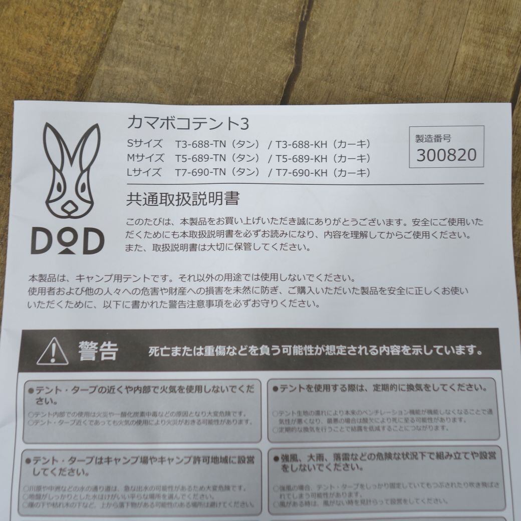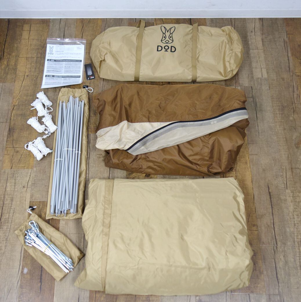 未使用 ディーオーディー DOD カマボコテント 3S T3-688-TN 2ルーム トンネルテント タン 2-3人用 キャンプ アウトドア cf05on-rk26y05707
