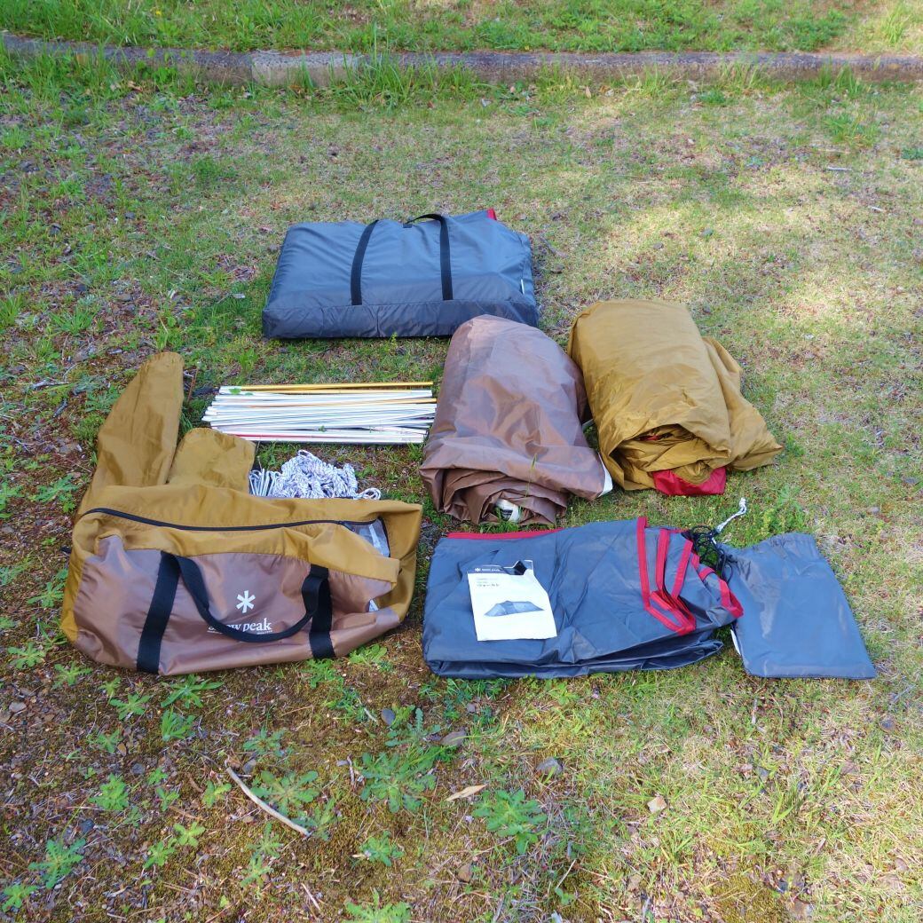 【付属品:本体・インナーテント・ポール・ペグ15本・自在ロープ・取扱説明書・インナーマット・グランドシート・収納ケース】