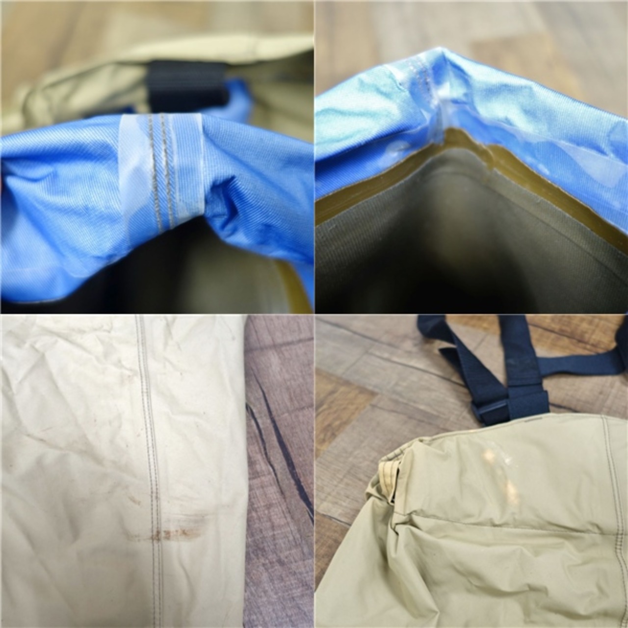 ・シームの浮き始め、全体的に汚れや変色、使用感がございます。