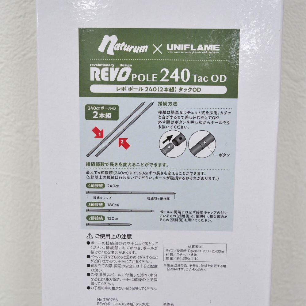ユニフレーム UNIFLAME REVO POLE 240 2本組 2セット Tac OD ナチュラム 別注カラー タープポール キャンプ アウトドア cf08om-rk26y06572