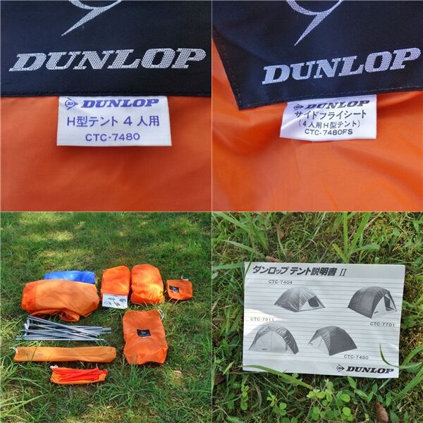 美品 ダンロップ DUNLOP H型テント CTC-7480 サイドフライシート CTC-7480FS セット 4人用 テント キャンプ アウトドア cf08er-rk26y06649